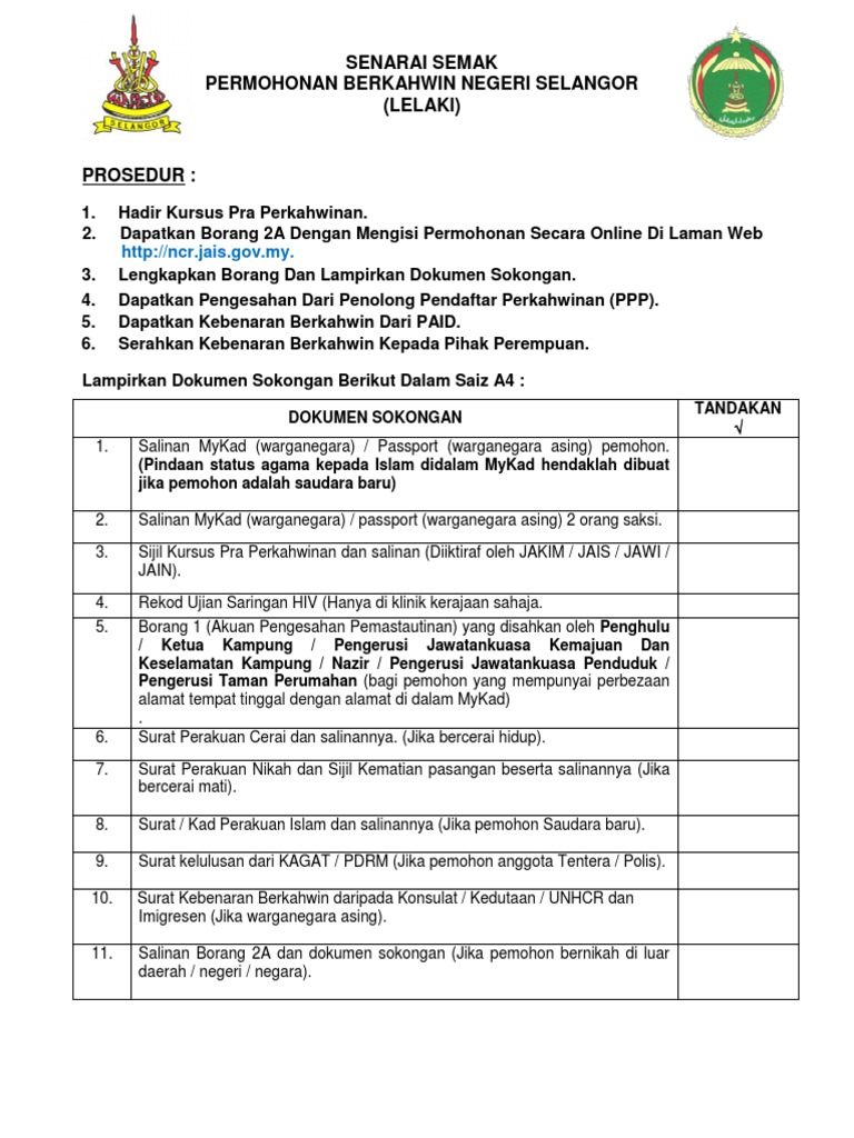 Senarai Semak Permohonan Nikah Lelaki Pdf